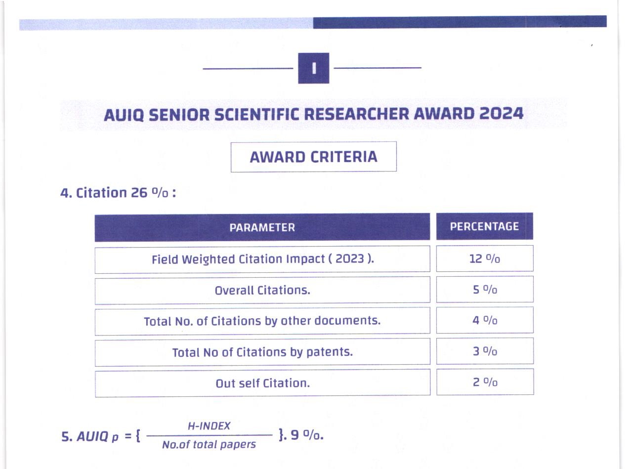 AUIQ Senior Scientific Researcher Award 2024